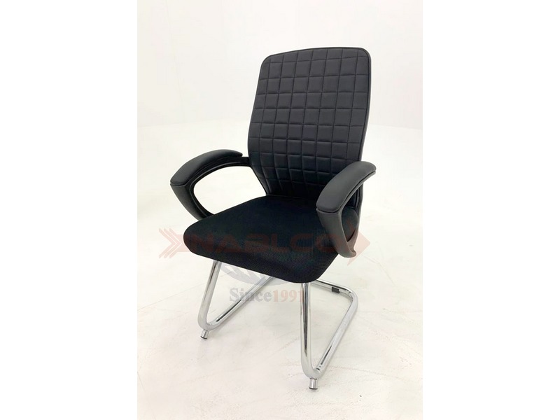 كرسى انتظار شبك وجلد بظهر فيبر بيدات فيبر مكسية شبك ويمكن تغيير اللون حسب الطلب والشاسية حديد فضى